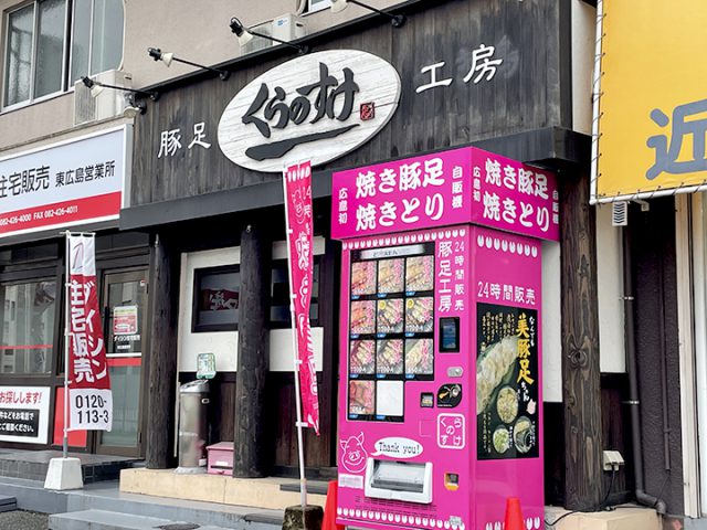 それまで焼鳥を主に取り扱っていた飲食店が業態転換し、「豚足工房 くらのすけ」として小売業に進出。店頭に設置した自動販売機のほか、JA交流広場「とれたて元気市となりの農家店」などで豚足や焼き鳥を販売しています。