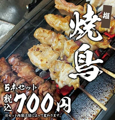 焼き鳥<たれ・塩>(5本セット・700円)