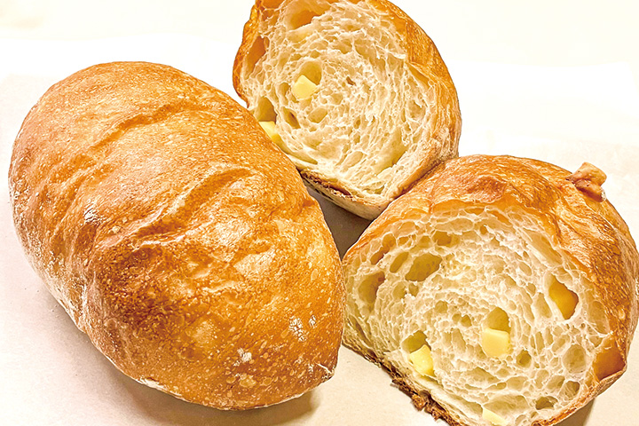 もちもち、しっとり食感にするために湯種を使い、3日間熟成させた多加水パンがこだわり。ほんのり甘くて薄いクラスト(皮)がとりこになるおいしさです。