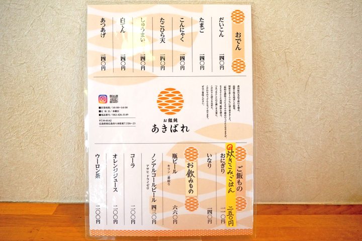 あきばれのメニュー