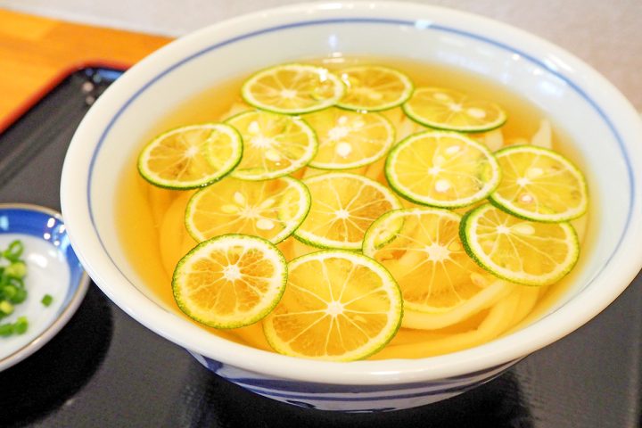夏季限定のすだち冷かけうどん