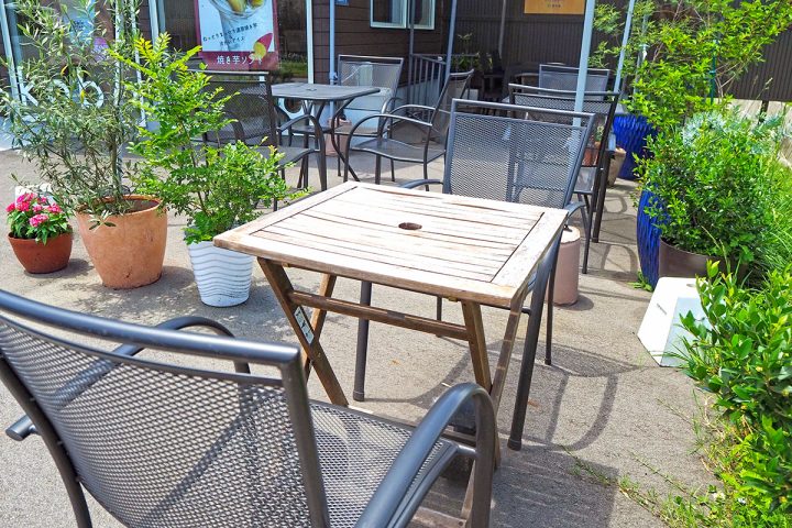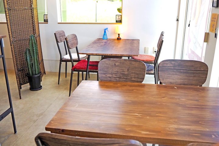 店内はテーブル席が12席、外にはテラス席が14席あります。
