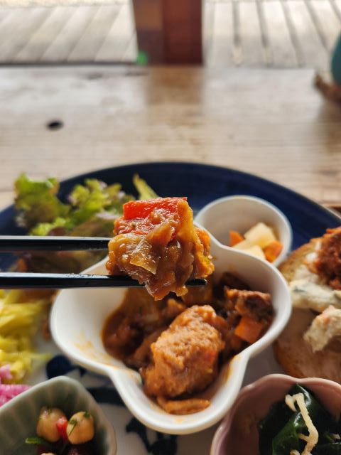 素材の味が生きているのはもちろんですが、一つ一つ味がしっかりしていてパンと合います。豆腐のタルタルや大豆ミートなど初めて食べるものも多かったですが、すごくおいしかったです。魚や肉を食べていないのにボリュームたっぷりでおなかいっぱいになりました。