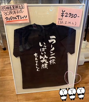 ラーメン本舗 珍豚香 黒瀬本店では、30周年を記念して店員さんの来ているTシャツを新調したとのことです。