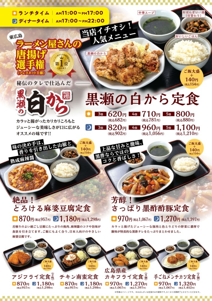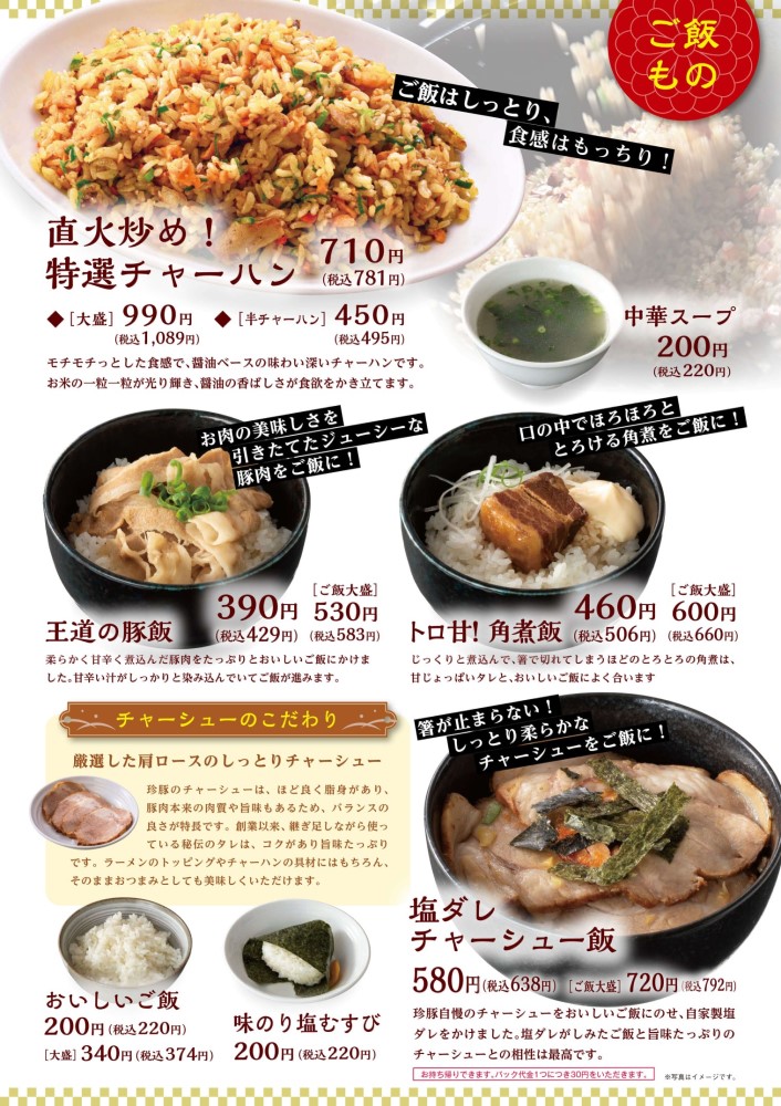 ラーメンレストランである「珍豚香 黒瀬本店」にはまだまだ多種多様なメニューがあります。