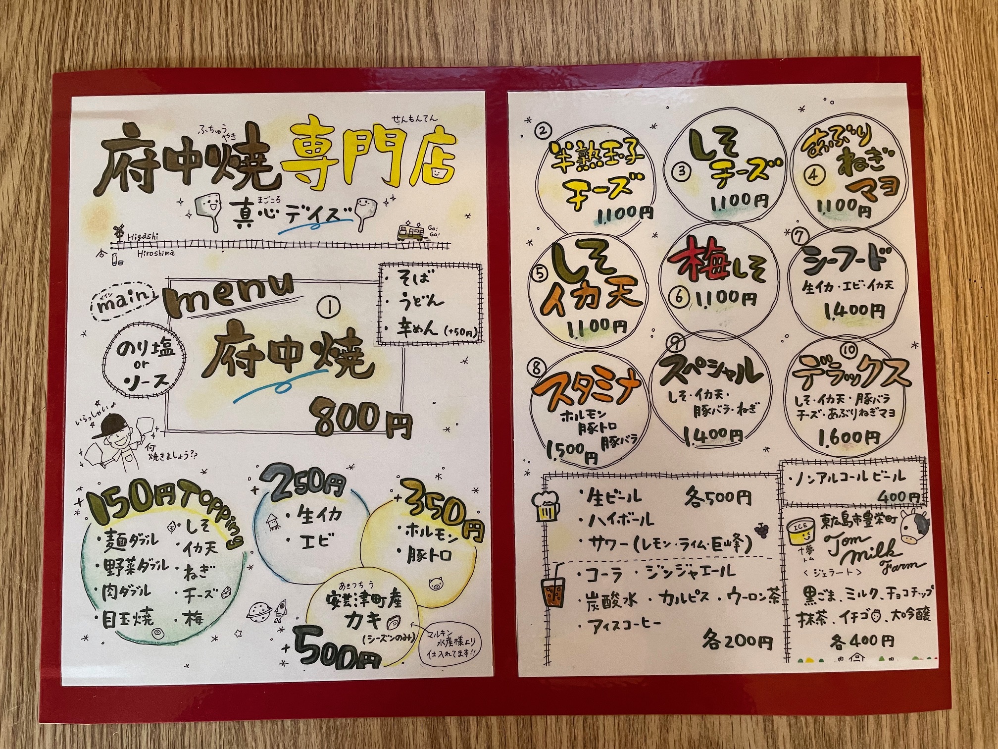 ベーシックの府中焼きに、さまざまなトッピングをするのがおすすめ。