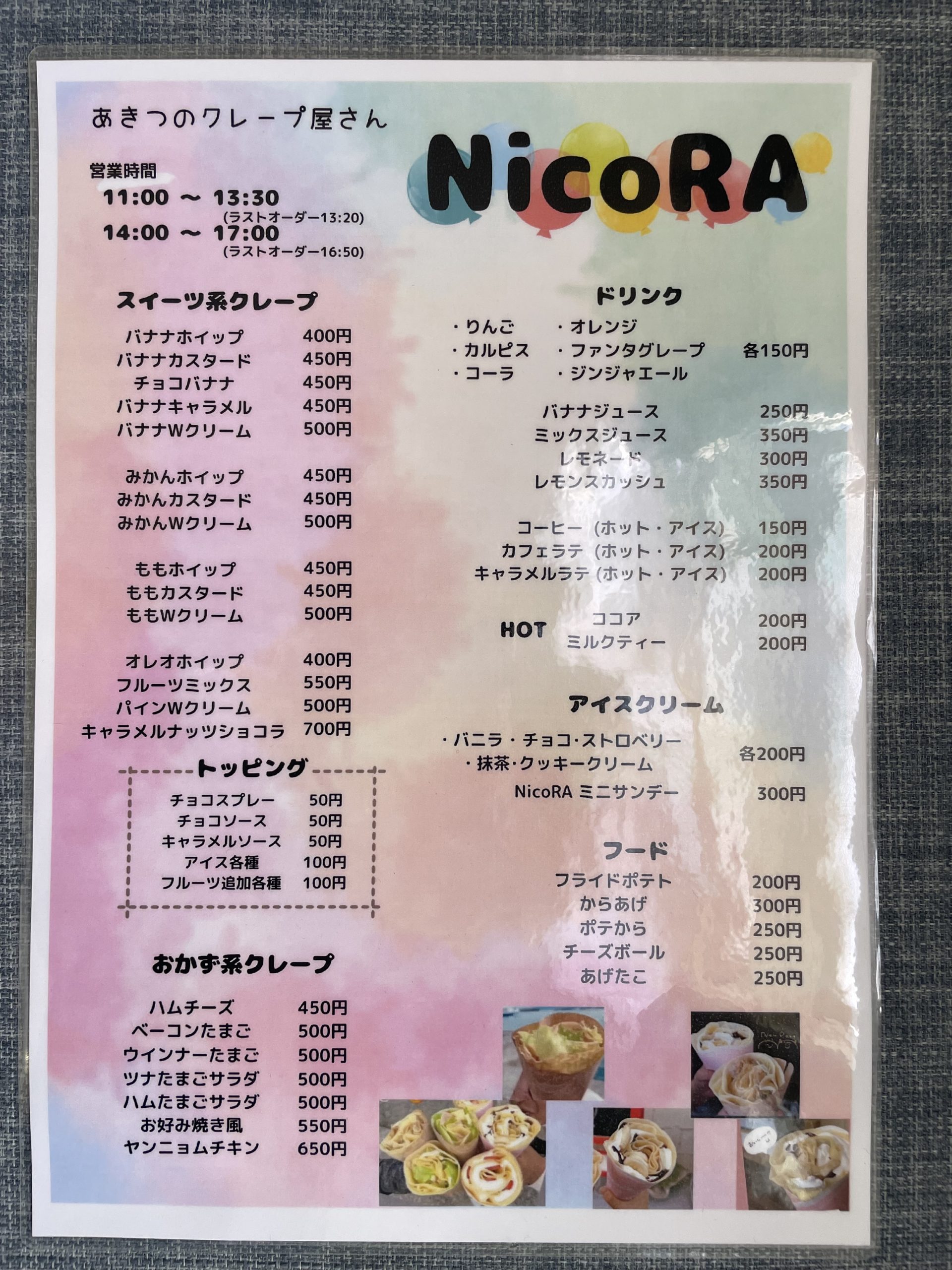 『NicoRA』の『Nico』は、にこにこのニコ。来店された方にニコニコ笑顔になってもらいたいとの思いを込めてつけられたそうです。お気に入りのクレープを見つけに、足を運んでみてはいかがでしょうか。