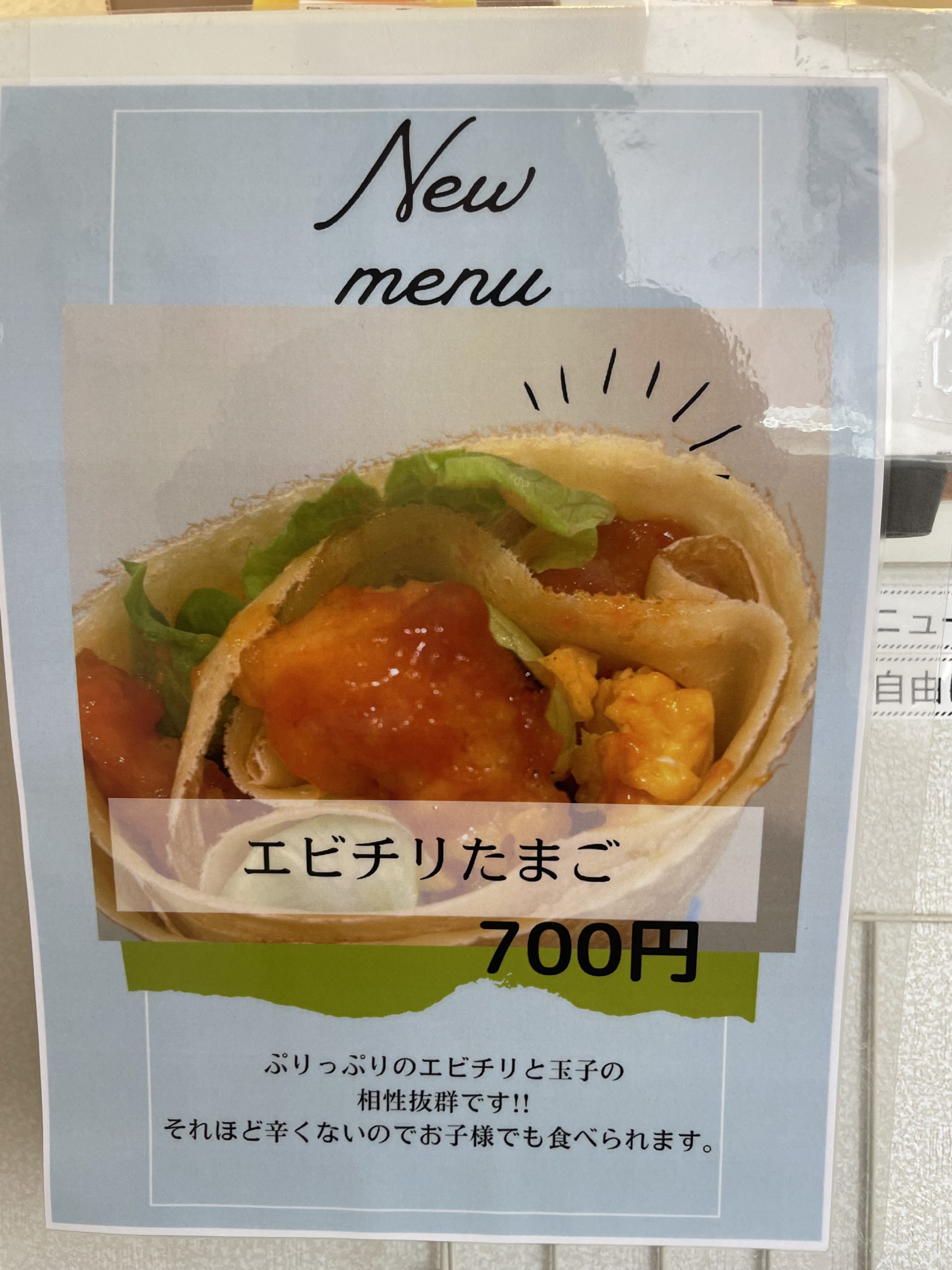 「なぜ、お好み焼きとクレープの組み合わせに?」の問いに、「なんでもクレープで巻けるんじゃないかと思うんです。で、巻いてみたら、やっぱりおいしかったから」と店主の奥山さん。新メニュー、ぷりぷりのエビチリと玉子を包んだ「エビチリたまご」も登場。今後も楽しみです。