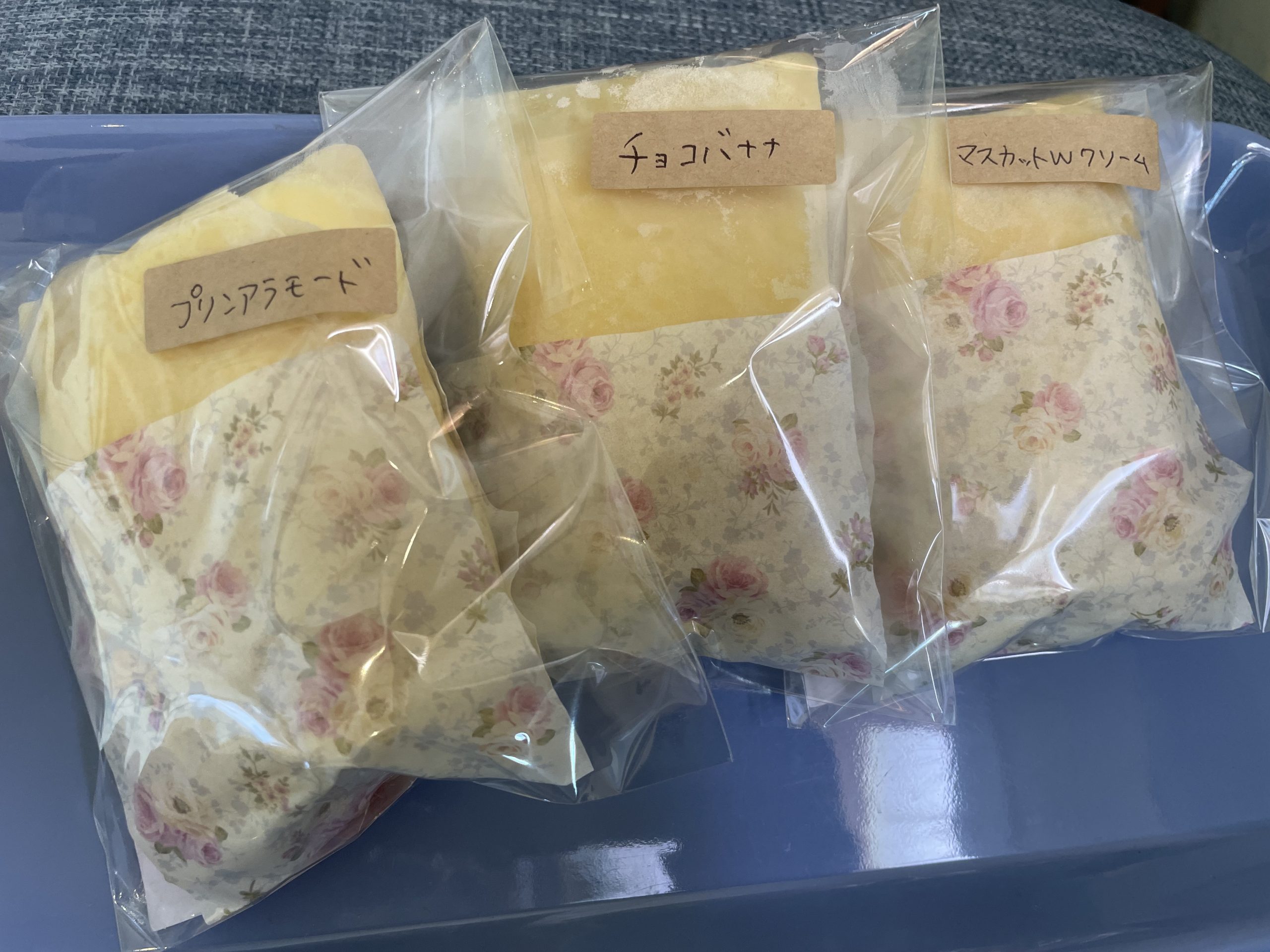 こちらは、ラッピングされているので、後でゆっくり食べたい方、手土産にしたい方にも喜ばれています。ミニクレープと呼んでいますが、ボリュームたっぷりの満足のサイズです。