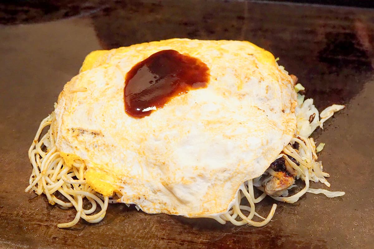 おすすめの「広島風肉玉そば」にカキをトッピング