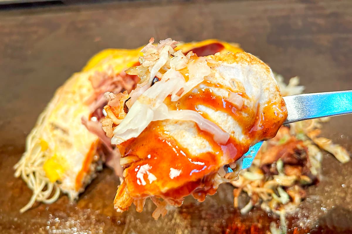 東広島市八本松東の「お好み焼・鉄板焼 おおにし」は、広島と関西のお好み焼きがどちらも楽しめる店。府中焼きやもんじゃもあり、さまざまな鉄板料理が楽しめます。
