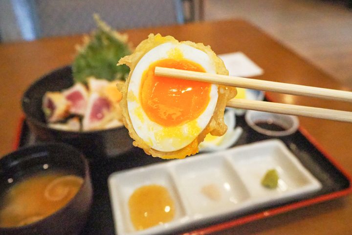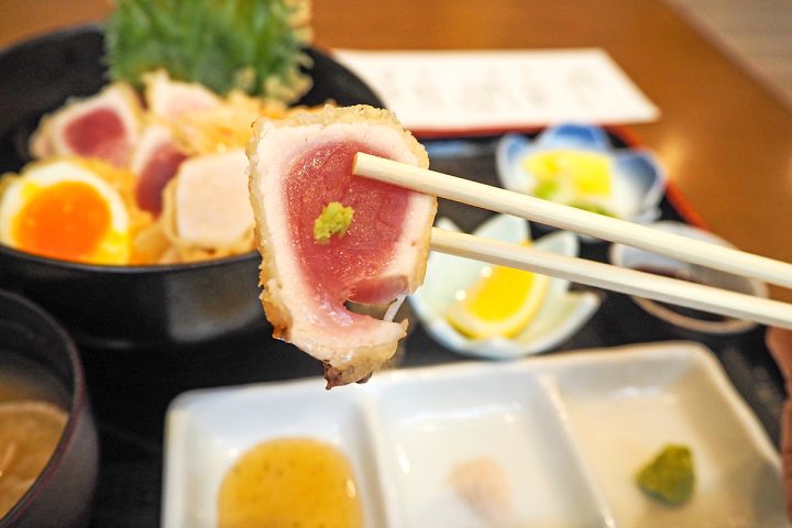 刺し身の天ぷらは、外側はサクサクで、中心は生でしっとりとした食感です。
