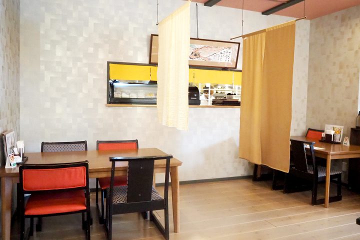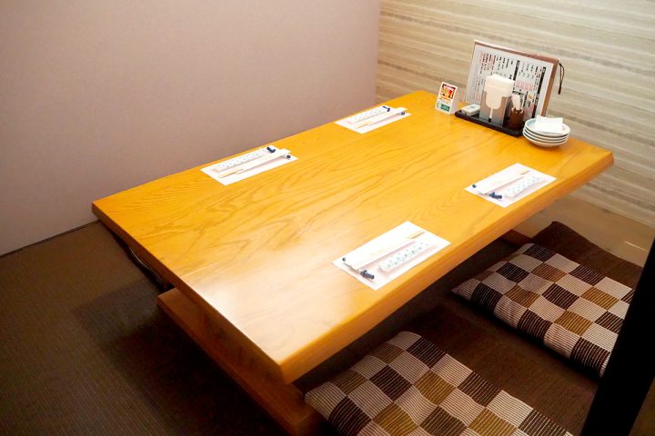 店内には、4人掛けのテーブルが3席と2人掛けが2席、座敷の個室が2室あります。