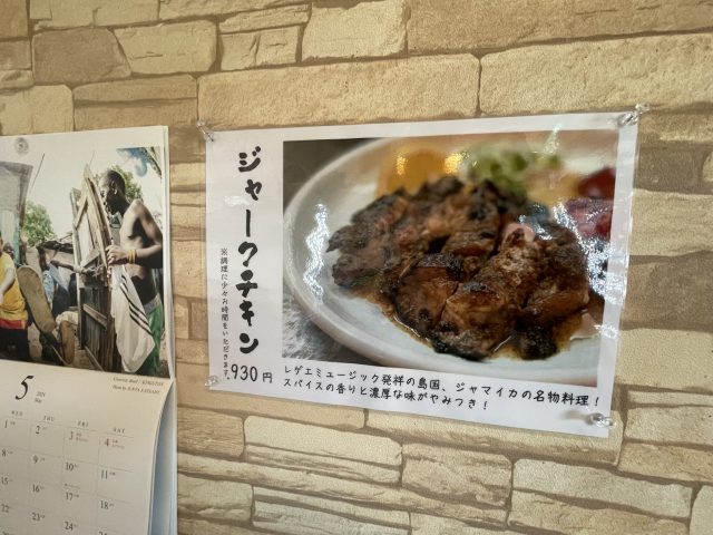 気になったのは、レゲエミュージック発祥の国、ジャマイカの名物料理「ジャークチキン」。スパイスの香ばしさと、ピリッと濃厚な味がやみつきになるという、お酒にもご飯にも合いそうなメニューです。
