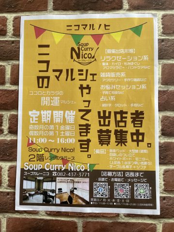 FM東広島 東広島★情報局 毎週金曜日10時台のコーナー 街角リポート リポーターの平野朋美です。7月19日(金)は、レンタルスペース、イベントスペースが本格稼働した東広島市西条町御薗宇のスープカレー専門店「Soup Curry Nico!(スープカレーニコ)」に行ってきました!