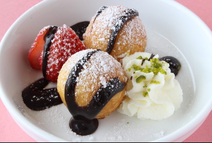 味、食感、見栄えなど、さまざまな種類のいちごスイーツは、目でも口でも楽しむことができます。3月限定のいちごスイーツ「もっちりドーナツといちごのチョコムース」が登場。もっちりと弾力のある一口ドーナツに生クリームといちご、チョコレートソースをかけています。