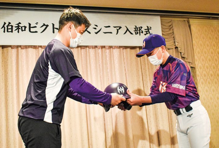 東広島市唯一の社会人野球チーム・伯和ビクトリーズを運営している伯和グループ(本部・同市八本松西、安本政基社長)が中学生軟式野球チームの伯和ビクトリーズシニア(北舛宏喜代表)を結成。「第1期生入部式」を3月19日、西条HAKUWAホテル(同市西条下見)で開いた。スタッフや選手、保護者など関係者約80人が出席した。
