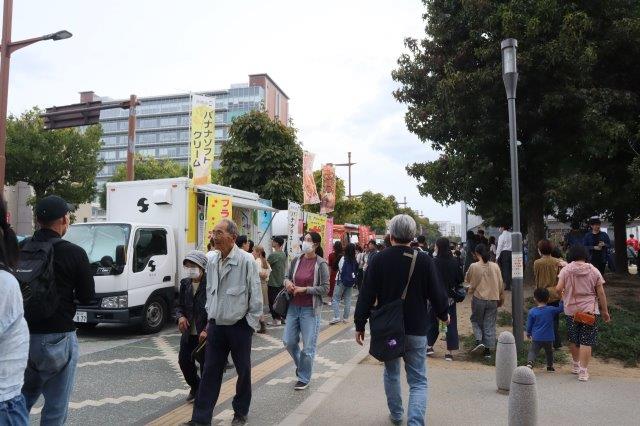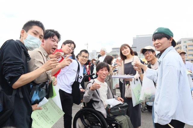 東広島市最大のイベント「酒まつり」(酒まつり実行委員会主催)が10月7~8日、JR西条駅周辺で開かれ、2日間で延べ約20万人が訪れた。「つぐ」をテーマに、4年ぶりに制限がない状態で開催。