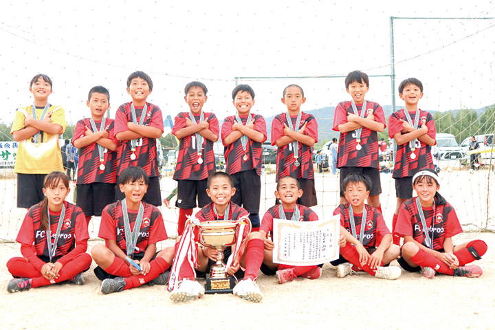 レブロス山口のキャプテンで6年の前永宏君は「勝因はコミュニケーションとチームワーク」と笑顔。安本会長は「努力の大切さや仲間を思いやる心を育んでもらえたら」と話していた。