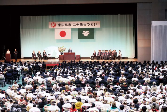 式典では高垣広徳市長が能登半島地震の犠牲者に哀悼の意を表した後、「自己責任という言葉を忘れず、周囲のことまで考えられる大人になり、一度しかない人生を謳歌(おうか)し心豊かに歩んでほしい」とエール。新成人を代表して広島国際大2年の藏田優さんと広島修道大2年の玉積岳大さんが「無事に二十歳を迎えることができたのは、支えてもらった先生や地域、家族のおかげ。東広島で育ったことを誇りに思い、社会の発展に貢献できるよう精進する」と誓った。