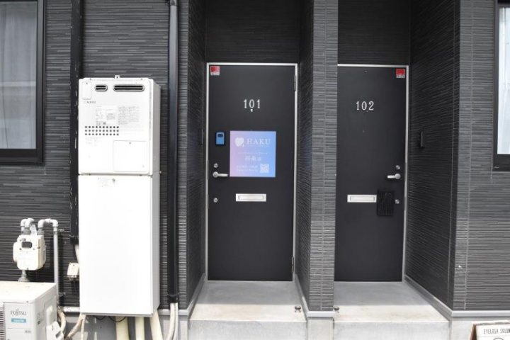 101号室がサロンになります。ここが入口になります。セキュリティーもばっちりです。