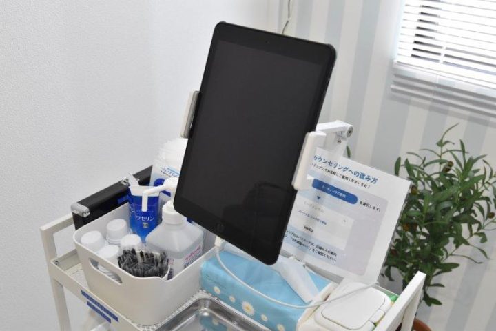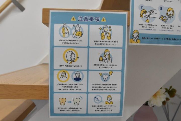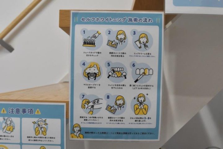 イスに座ったら、ポータブルを使用して、専門家のアドバイスをもらいながらメディカルホワイトニングをしていきます。ずっとサポートをしてくれるので安心です。