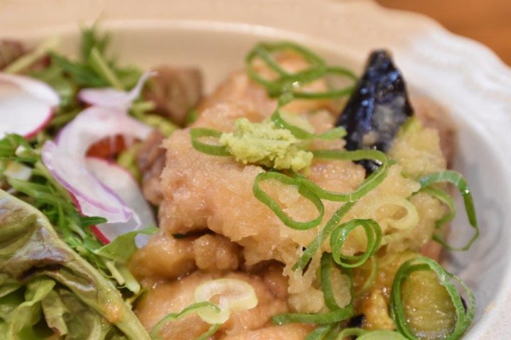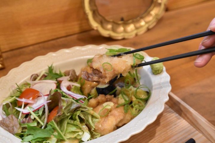 ・揚げどりとナスのみぞれ煮ワサビ添え