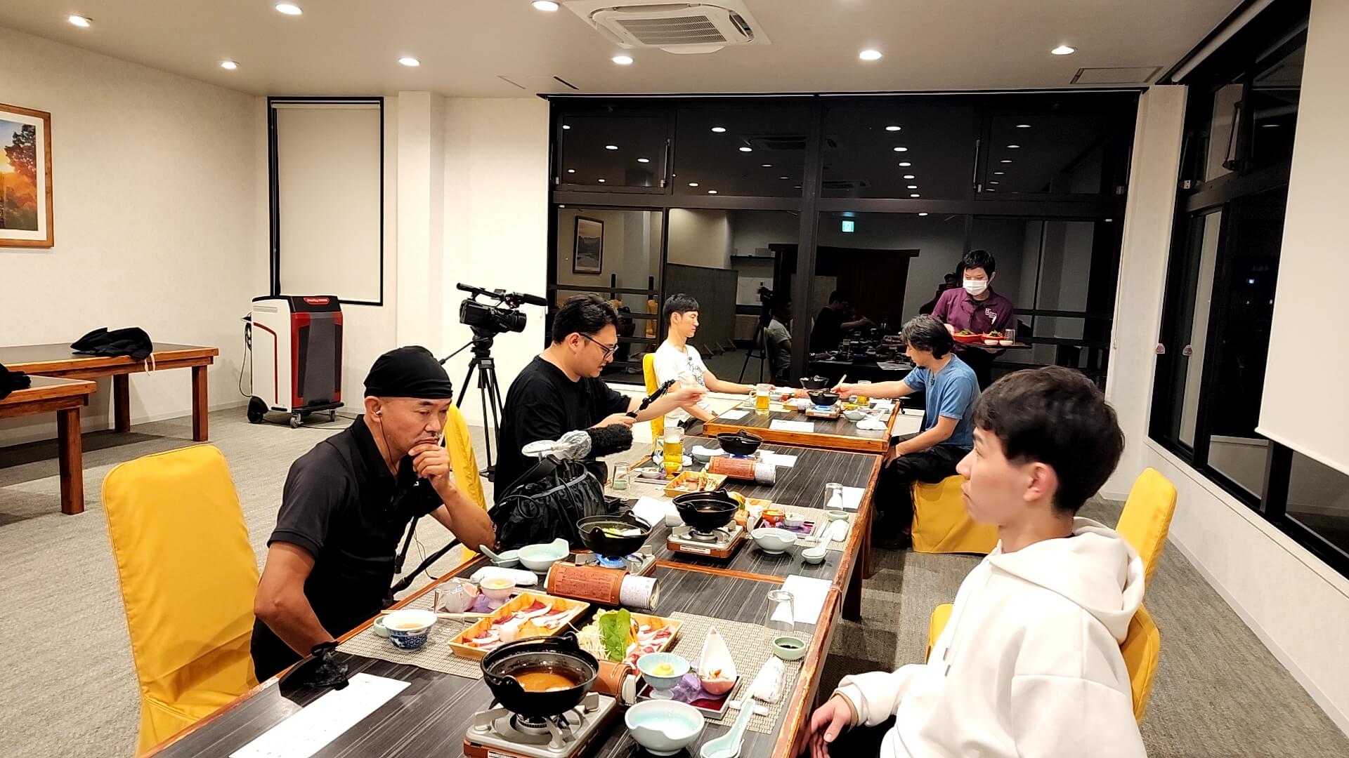 夕食時もひろゆきさん、石丸さん、前田さんは様々な楽しい会話を繰り広げていました。