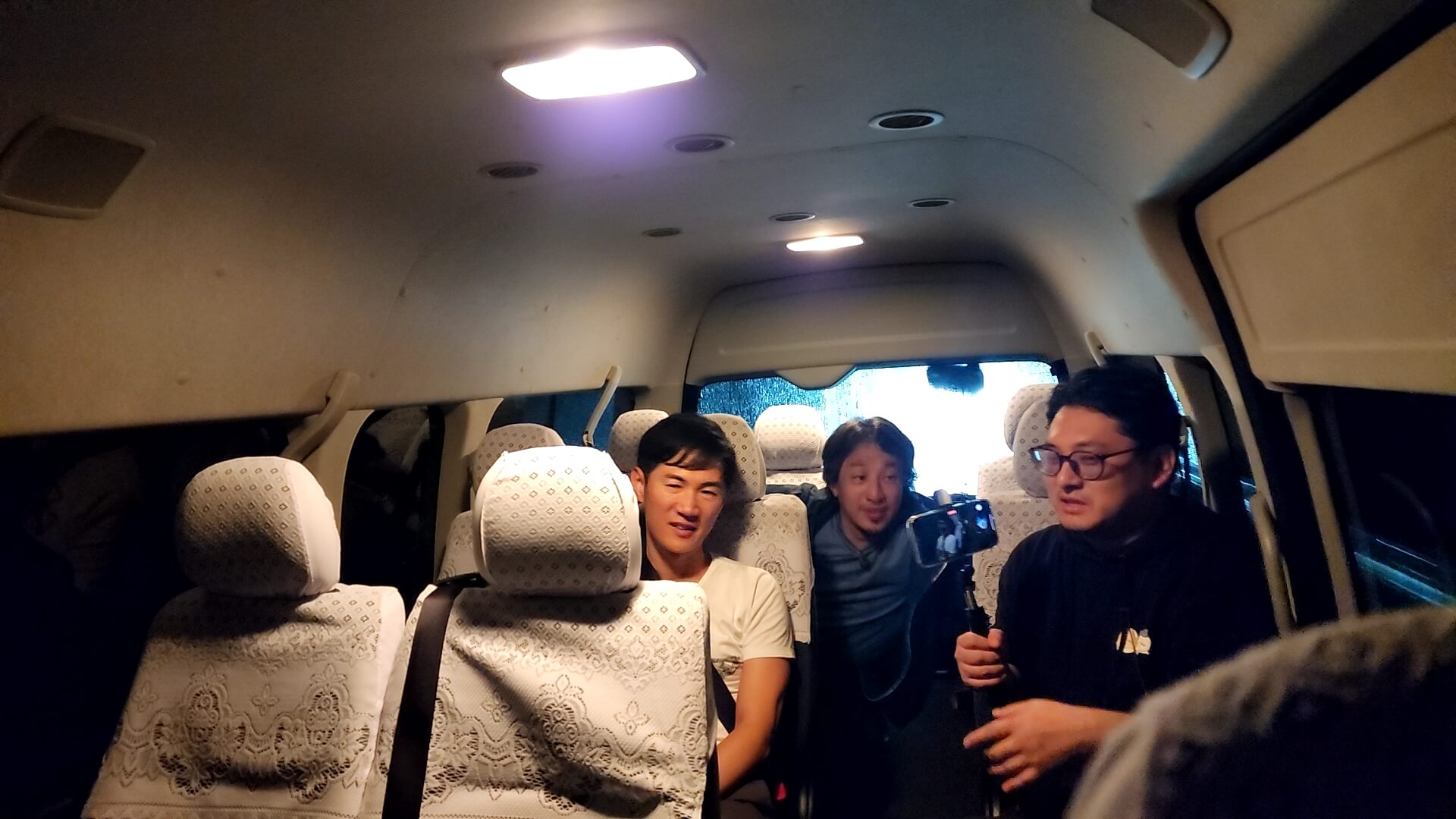 尾道からホテル白竜湖リゾートまでは約1時間ほど。そのあいだ、石丸さん、ひろゆきさん、ReHacQの前田さんの3名はずっと楽しくお話をされていました。
