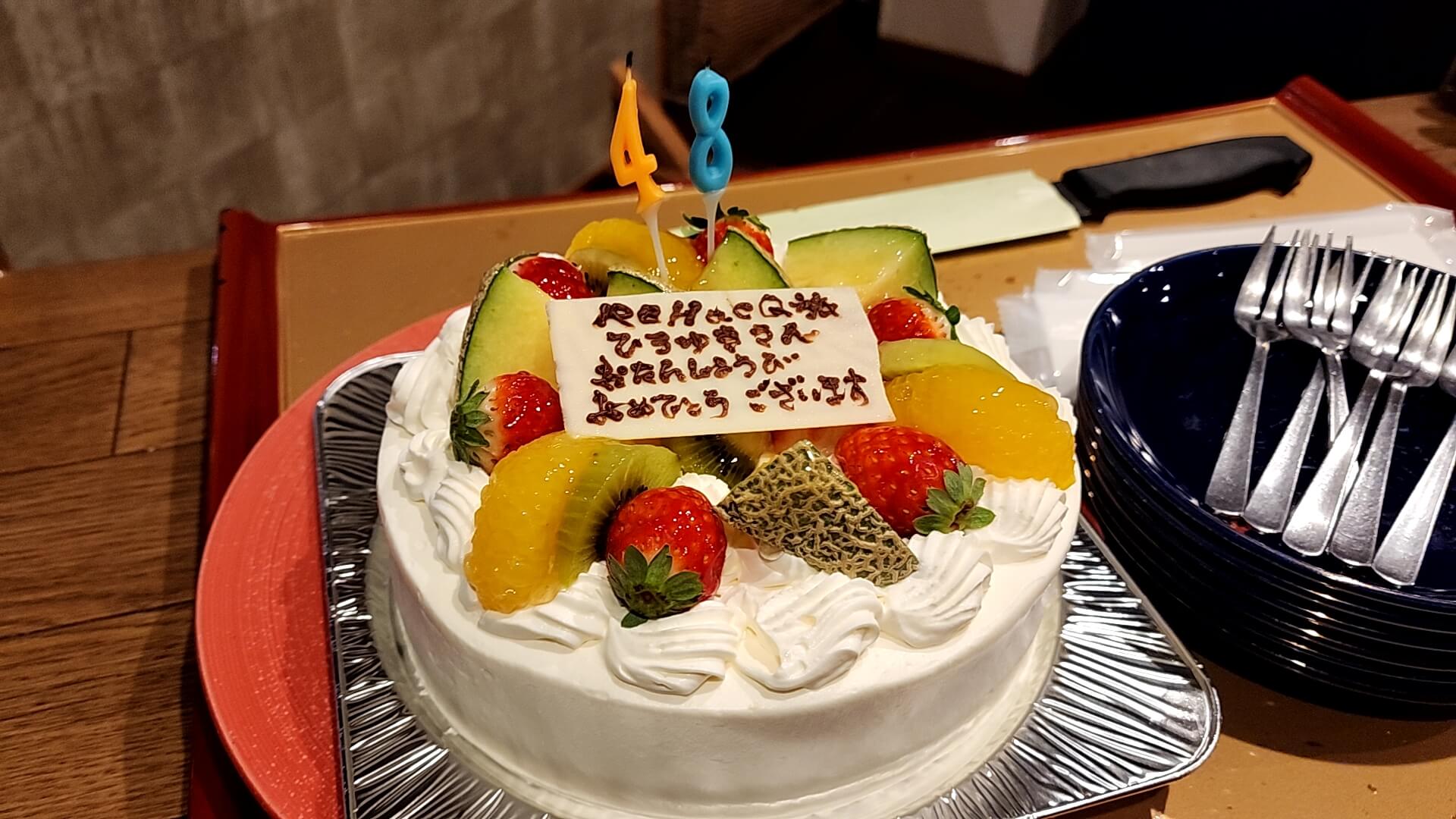 スタッフの下手なバースデーソングとともに運ばれるバースデーケーキ。