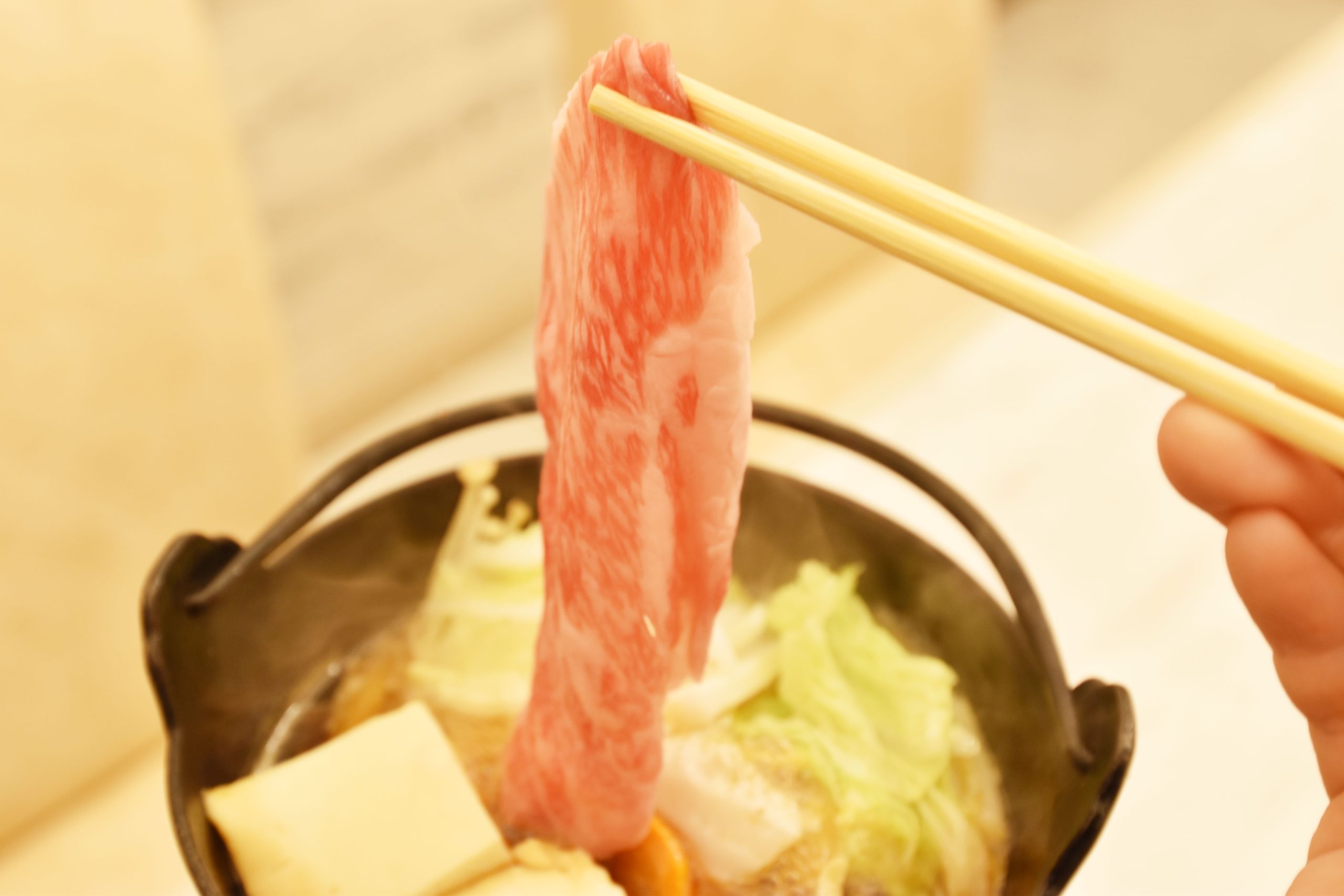 この和牛を大胆にも、一人すき焼きの鍋の中へ投入していきます。