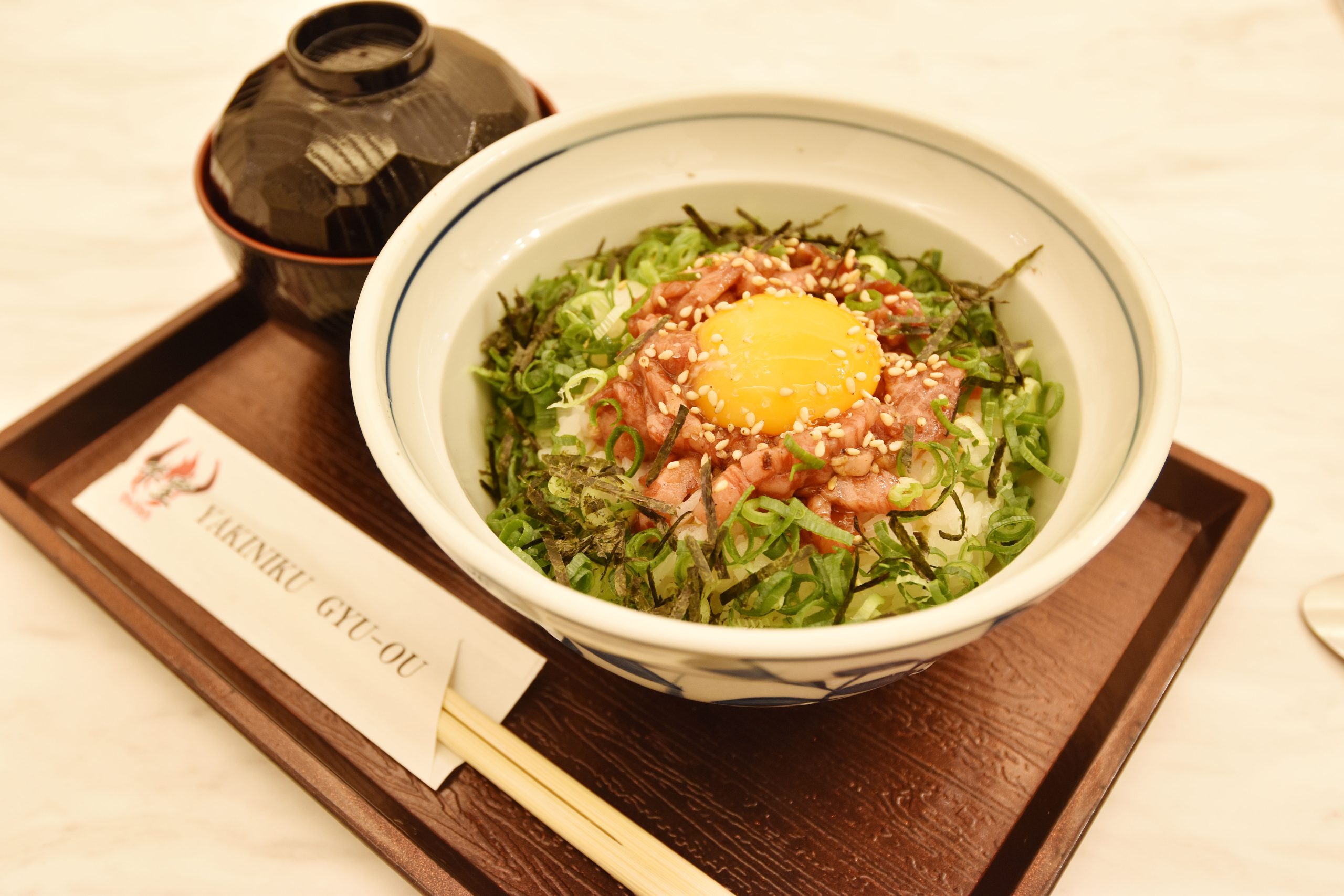 卵黄をくずしてユッケと混ぜながら食します。ご飯との相性抜群。葱のシャキシャキ感も良いアクセントになっています。
