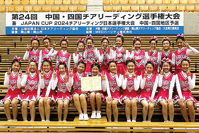東広島市で活動するチアリーディングチームPINKYS(ピンキーズ、岩手優里香代表)は7月14日、第24回中国・四国チアリーディング選手権大会に初出場し、エキシビション部門でグッドスマイル賞を受賞した。
