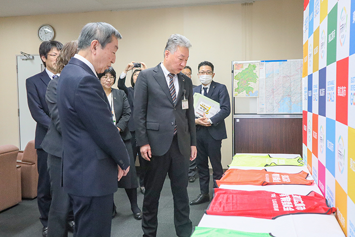 しまなみ信用金庫(本店・三原市港町、安原稔理事長)は2月18日、東広島市に青少年育成事業の一環でメッシュビブス(ユニフォームなどの上から着用する袖のないベスト型の衣服)50着を贈った。