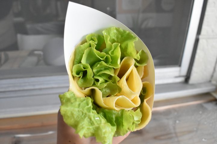 先ほどのクレープと比べると生地があったかくパリっとしています。