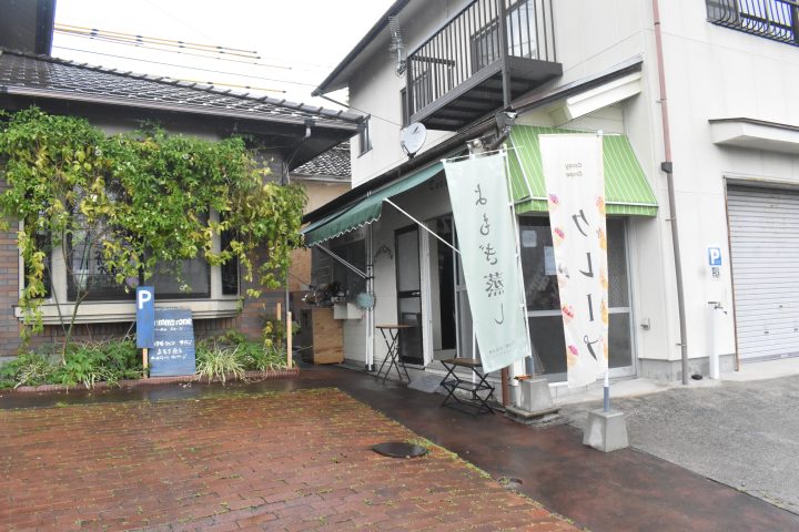 西条方面から国道375号を黒瀬方面にずっと走っていくと金光酒造があり、その先の信号を左に曲がり、それからすぐ右に曲がり細い道を走るとすぐにクレープの文字の旗が見えてきます。