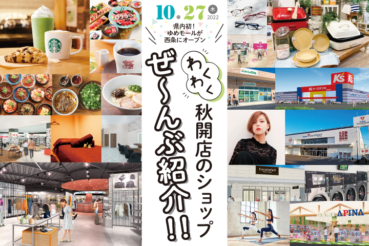 10月27日に開業する、東広島市西条町助実のゆめモール西条。専門店は2023年の冬までに、計29店舗が段階的にオープンする予定です。食品スーパー「ゆめマート」や広島銀行ATMのほかに、この秋にオープンする21店舗を紹介します。