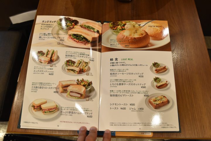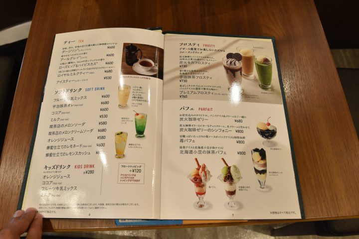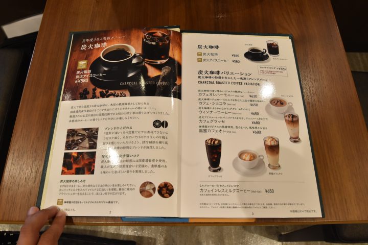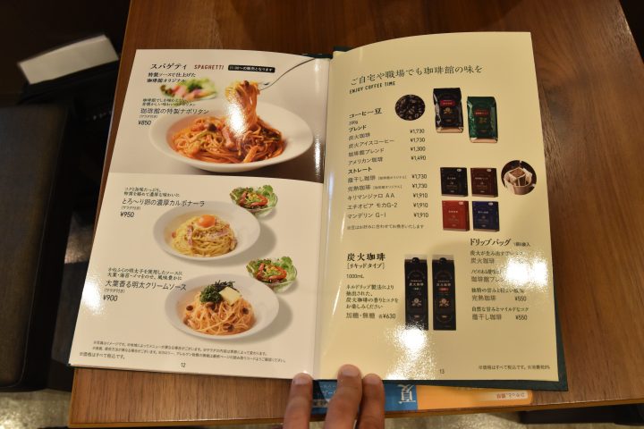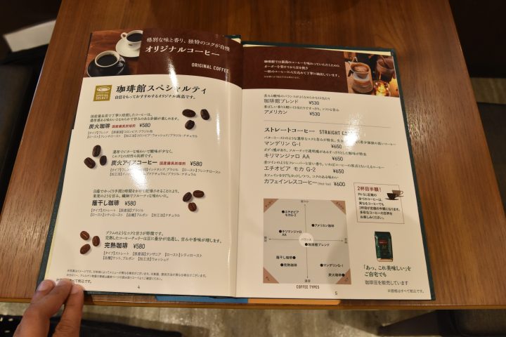 数種類のコーヒーは2杯目以降半額になる。珈琲館では最高のコーヒーを味わってもらうためオーダーを受けてから豆を挽き、丁寧に抽出している。