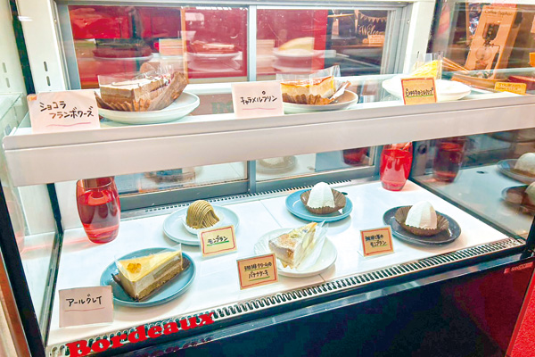 店内入口にはケーキのショーケース。食事のあとに楽しむのもよし、テイクアウトも可能なのでおみやげにもよし。1個580円。ランチ後のオーダーは480円。