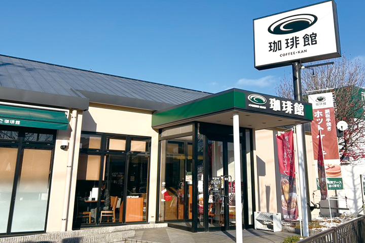 国道375号沿いの珈琲館は広い駐車場にゆったりとした店内。コンセントやWi‐Fi環境が整っているのもポイント。