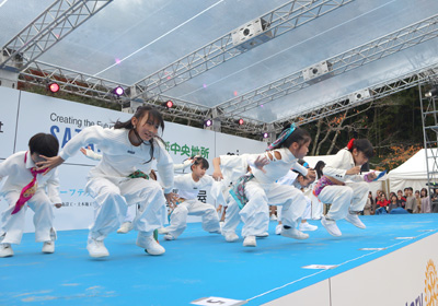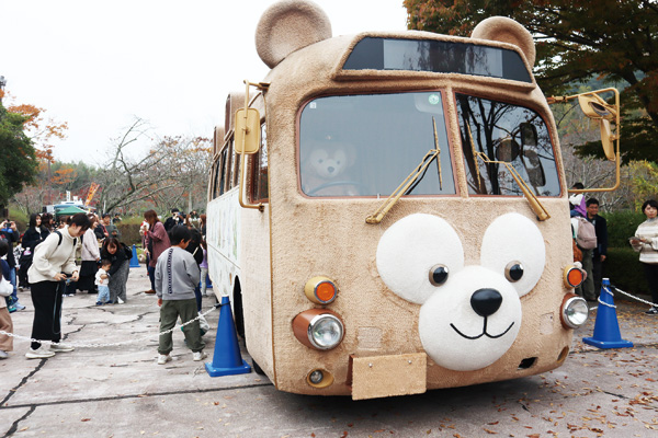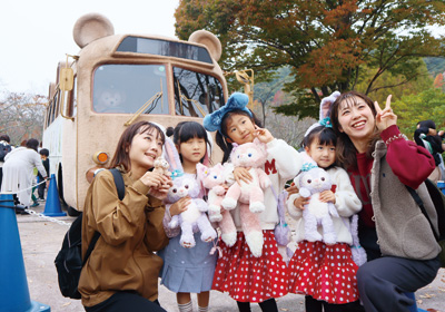 鏡山公園内の特設ステージでは、市民団体などが演奏やダンスなどのパフォーマンスを披露。中央園地エリアには、クマのダッフィーのぬいぐるみと同じ生地で車体をラッピングした特別仕様のダッフィーバスが展示された。