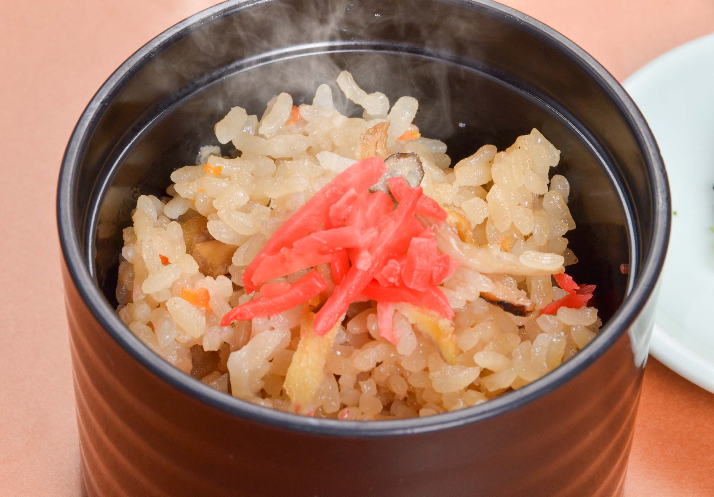 仕入れで変わる食事物。この日は香りよい炊き込みご飯で、さらに食欲をそそられました。