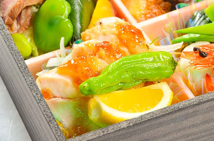 焼き物は、鯛かま照焼と鶏香草焼きの2種。しっかりと食べ応えがあります。