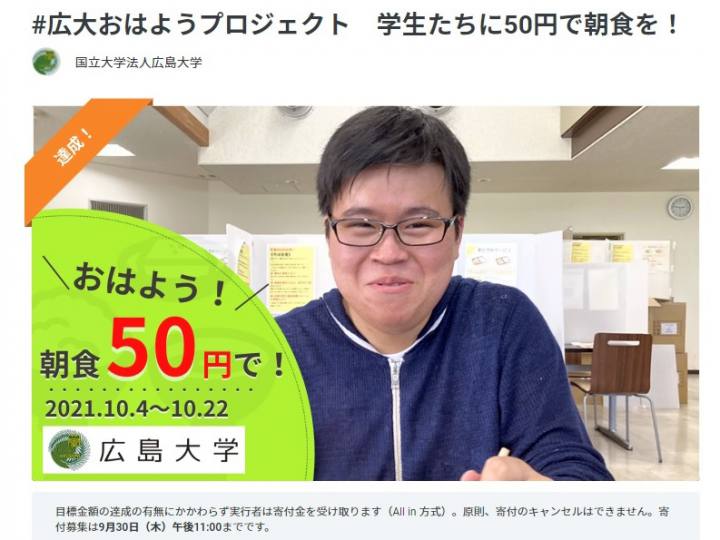 学生たちに50円で朝食を 広島大学がクラウドファンディング