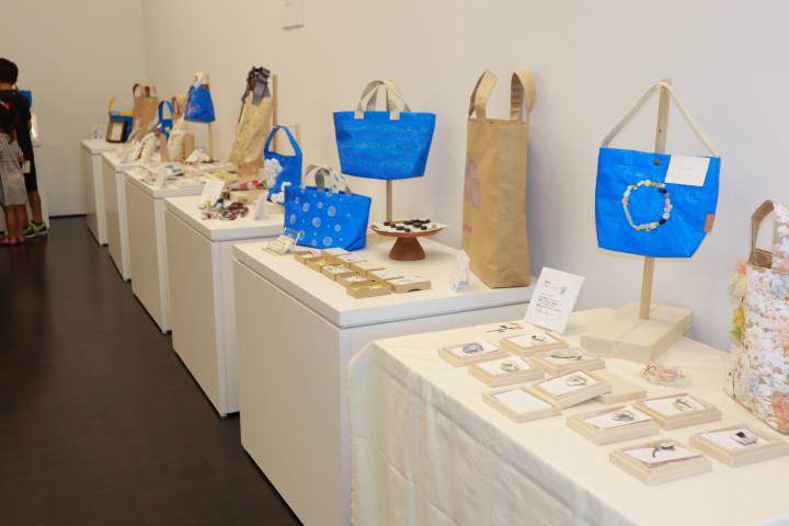「アオイチキュウ」守りたい! 廃材を活用、アップサイクルバック展示 市内のハンドメイド作家