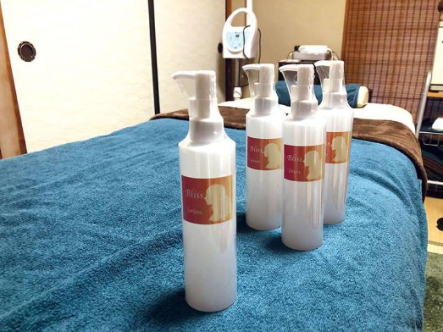 来店するお客さんには「自宅でのケアが大事ですよ」と話している山本オーナーは、5周年の記念と自宅でもしっかりケアをしてほしいとセラミド配合のオリジナル商品「ブリスローション」の販売を始めた。