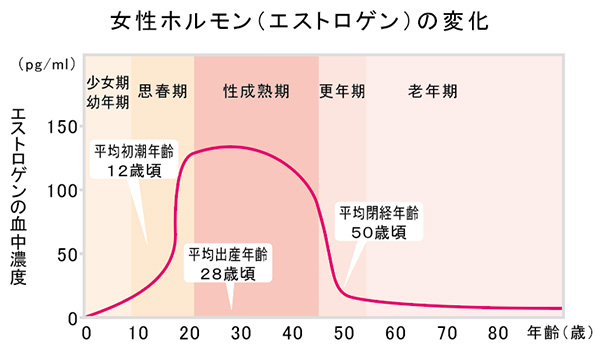 女性ホルモンとは卵巣から分泌されるホルモンで、女性らしい体をつくるエストロゲンと、妊娠をつかさどるプロゲステロンの2種類がある。エストロゲンは40歳くらいから徐々に低下し、45歳~55歳で激減。急激な低下は、自律神経に作用して急な発汗や不眠、肌や髪の乾燥、記憶力や集中力の低下、不安やイライラなどの悪影響を引き起こす。
