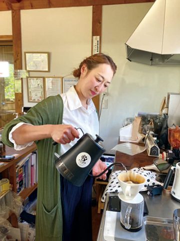 高屋町の飛鳥台団地。ナビを頼りに向かうと見えてきた白い建物。東京でカフェを営んでいた店主の藤原将雄さんがUターンしてコーヒー豆の焙煎(ばいせん)に専念。約10年、店舗を持たず口コミのみで販売。イベントでの販売を経て、昨年7月21日に店をオープン。店内業務はJSFCAコーヒーソムリエを取得した奥さんの藤原節子さんが担当。