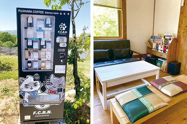車いすやベビーカーでも入りやすいようスロープになっている。入り口には24時間コーヒー豆が買えるよう自動販売機も設置されている。カウンター席は車いすのままでも大丈夫な高さ。そして店内奥の空間は、子ども向けの絵本やおもちゃを用意。子どもと一緒に、コーヒーブレイクはいかがでしょうか。