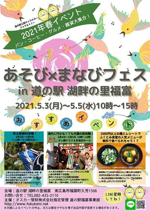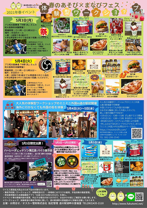 ※ワークショップ、体験ご希望の事前予約制に関して、道の駅湖畔の里福富ホームページに詳細を記載しております。
